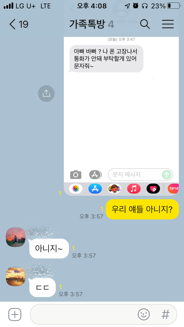 문자 받자마자 가족 톡방에 확인해 보았더니...