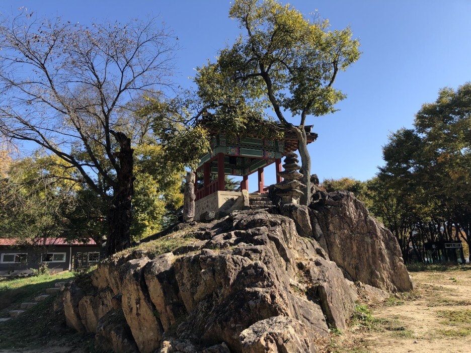 양산팔경 중 가장 아름답다고 손꼽히는 곳으로서 유유히 흐르는 금강가에 우뚝솟은 바위 위에 오롯이 서 있는 육각정자로 멀리서 보면 주변 노송들과 어울려 우아하고 고상한 멋이 흐릅니다.