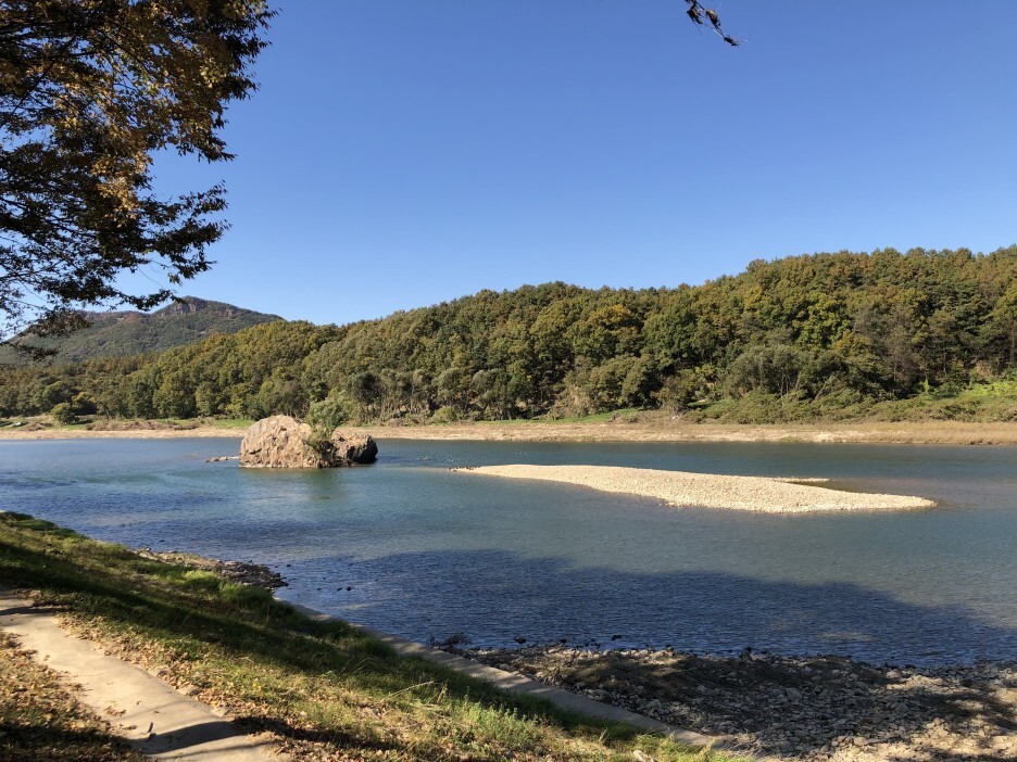 맑게 흐르는 강물 소리에 귀를 기울이게 됩니다.