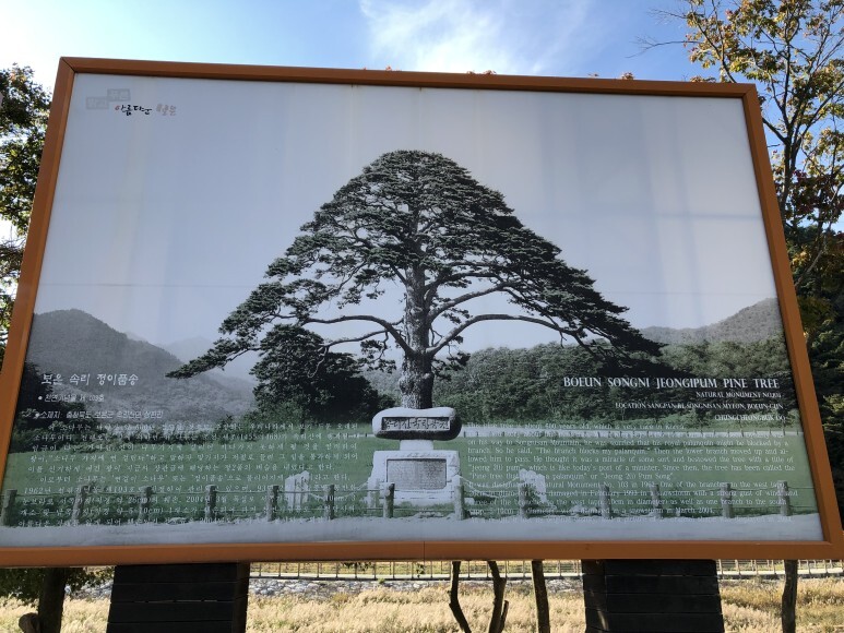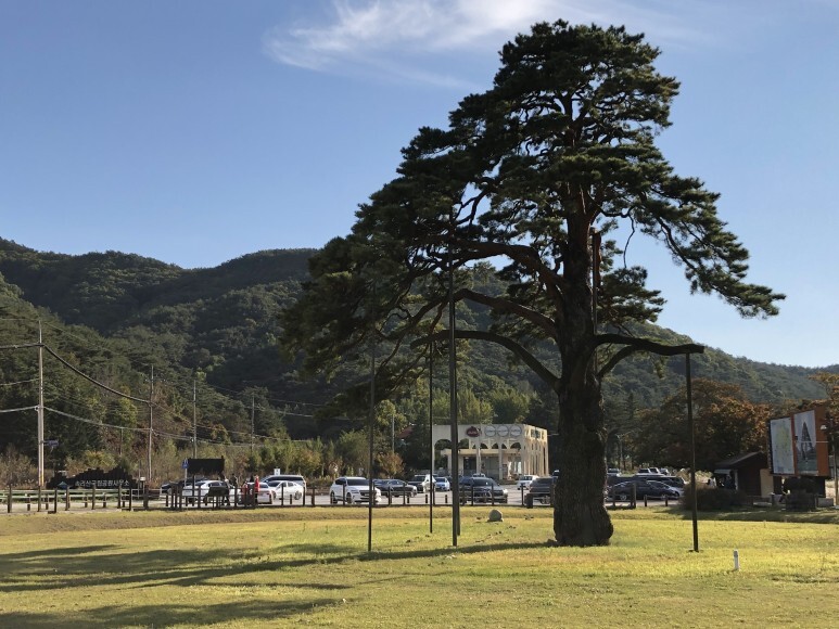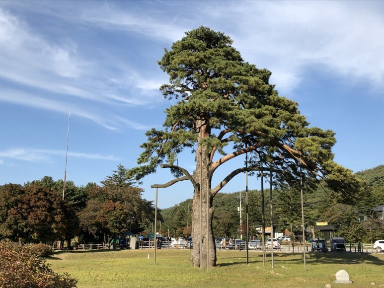 속리산 입구에 들어서기 전에 만날 수 있는 정이품송.