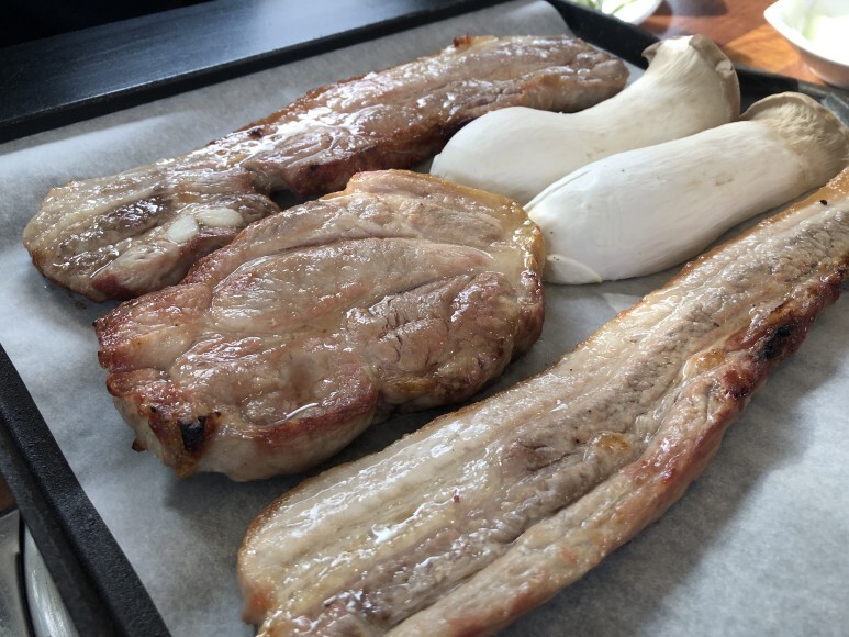 식사를 마친 후, 공기밥과 함께 흑돼지 라면을 추가로 시켰습니다.