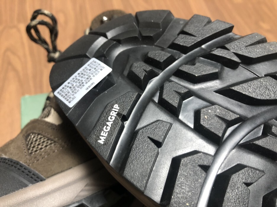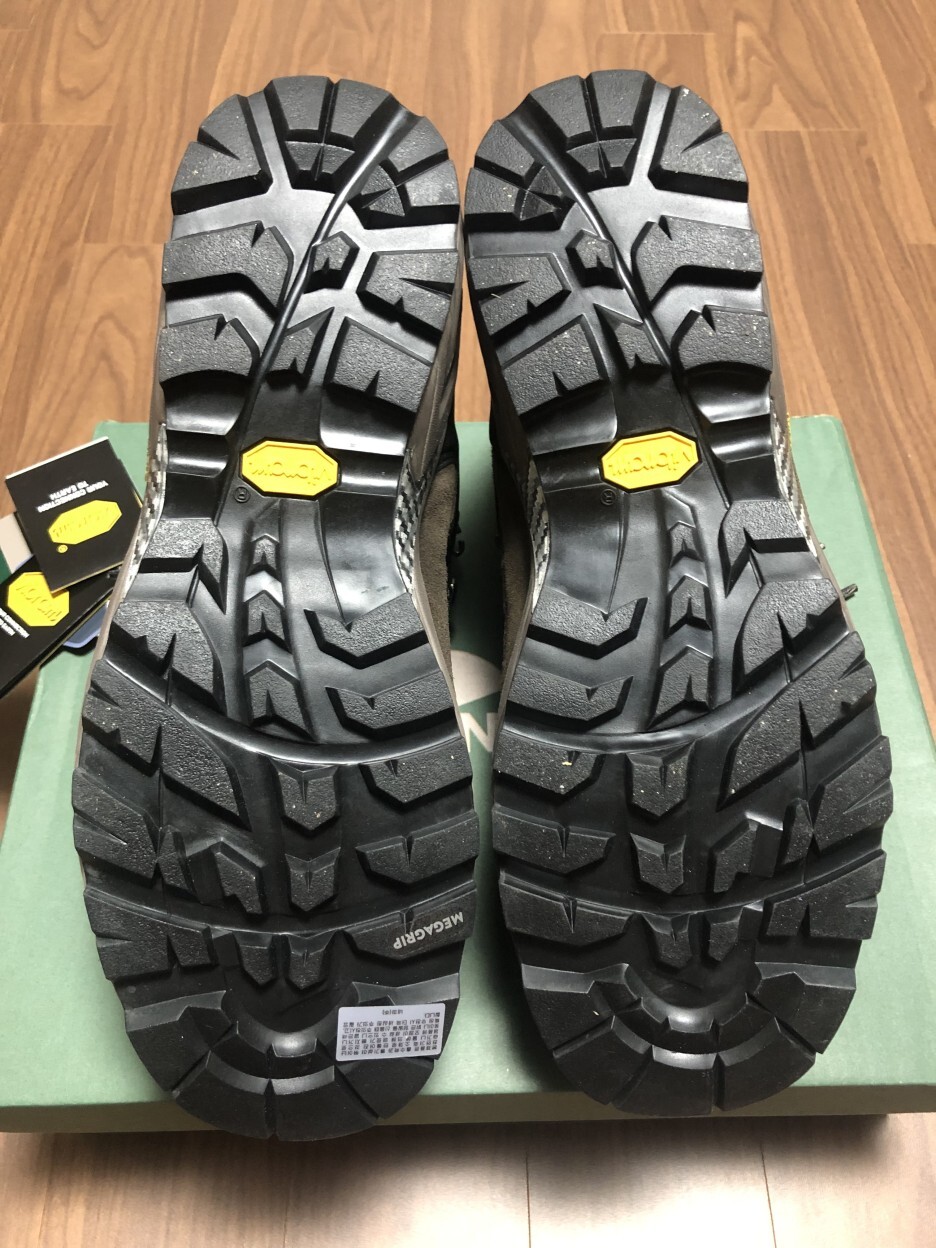 메가그립 택과 스티커가 붙어있으니 메가그립이라고 아는거지, 저 스티커가 떨어지면 이 아웃솔이 그냥 비브람솔인지 비브람 메가그립솔인지 알 방법이 없네요...