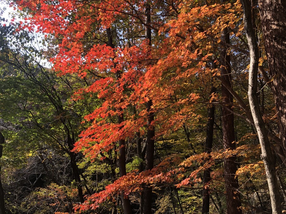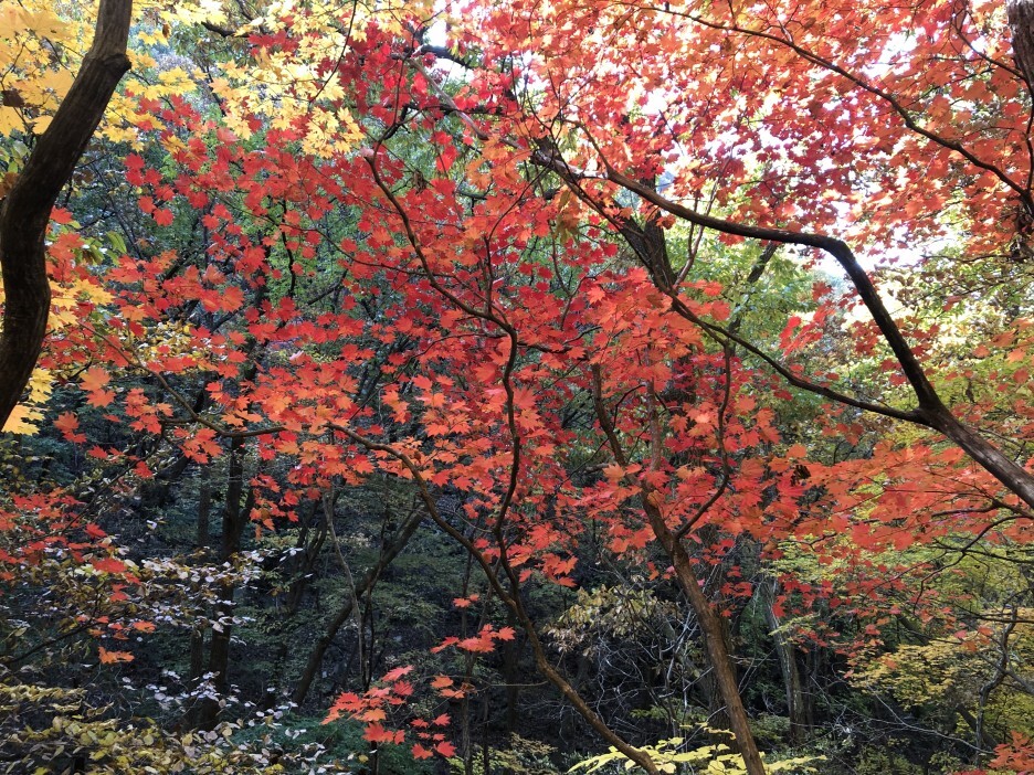 밑으로 내려갈수록 단풍이 짙어지는것을 볼 수 있습니다.