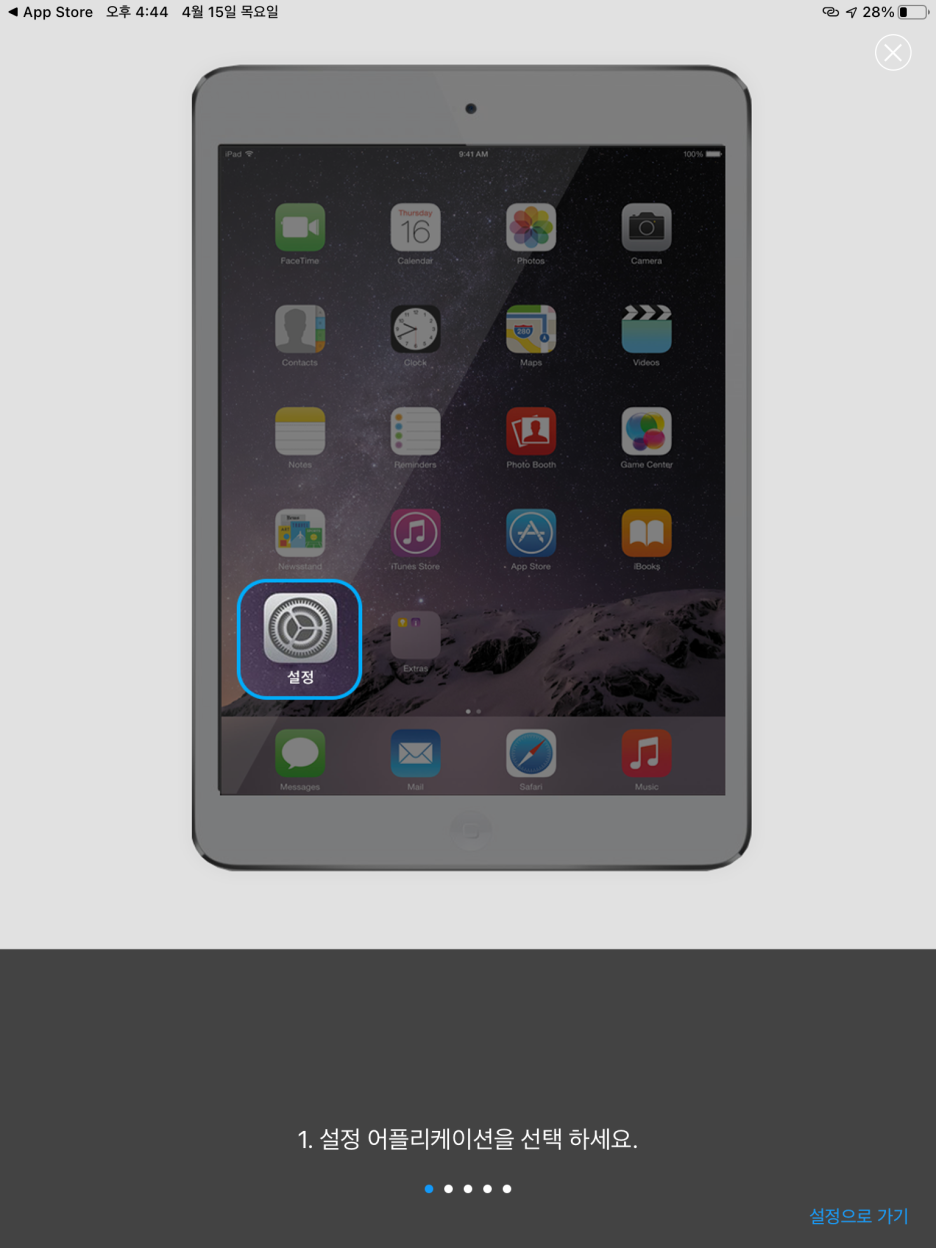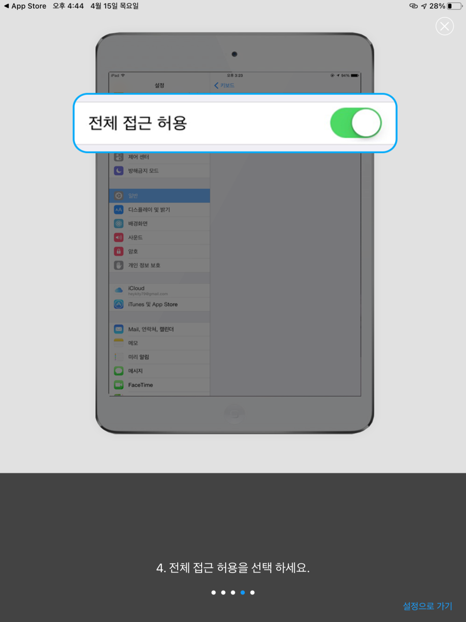 앱을 실행시키면 다음과 같이 자세한 설정 방법이 나옵니다.