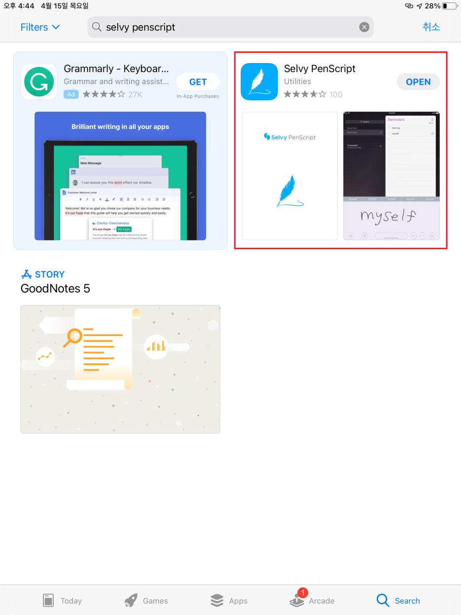 Selvy PenScript 앱을 앱스토어에서 검색하고 설치합니다.
