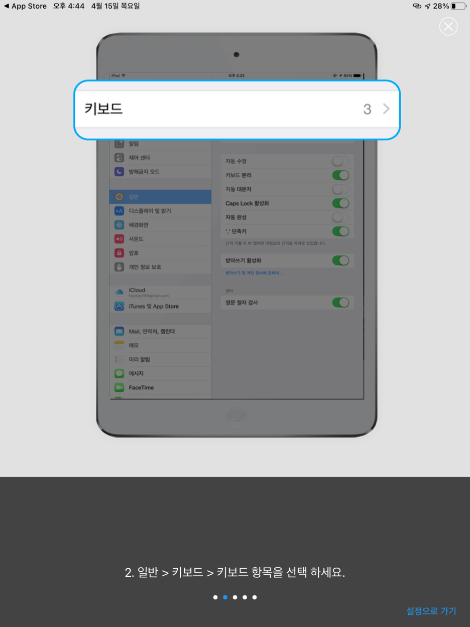 실제 사용하기 위해서는 메모장이나 메일, 사파리의 주소 입력창 등의 입력 필드에서 키보드가 나왔을 때