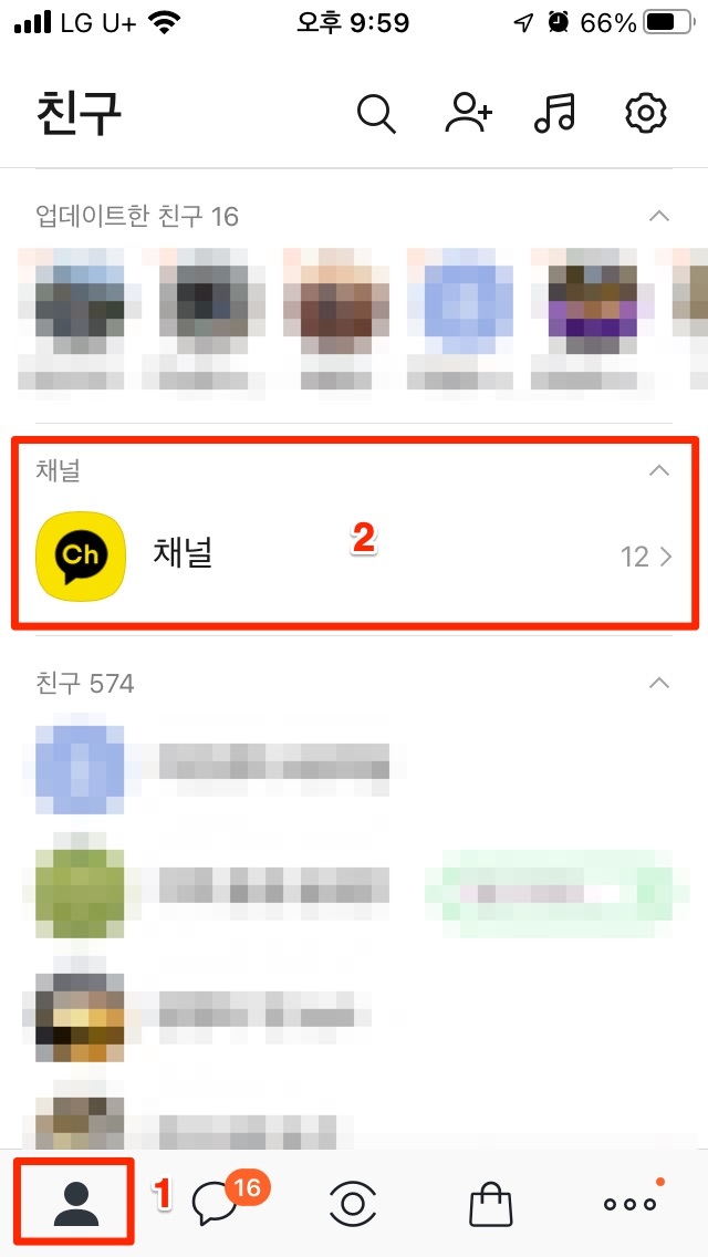 우선 카카오톡에서 [친구>채널]을 선택합니다.