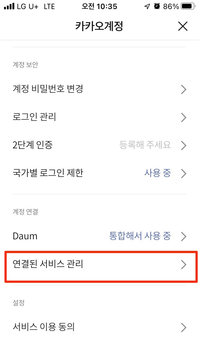 언제 연결 했는지도 모르는 서비스들... 카카오 서비스, 제휴 서비스, 외부 서비스등 다양합니다.