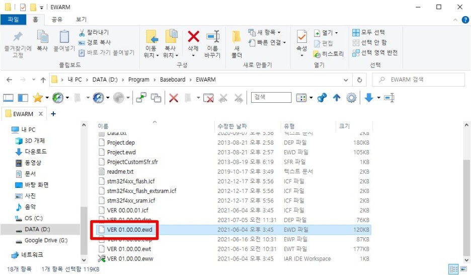 우선 탐색기에서 [프로젝트 폴더 > EWARM] 폴더로 이동합니다.