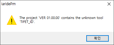 IAR Embedded Workbench 사용 중 특정 프로젝트를 오픈하면 다음과 같은 팝업 메시지가 나타납니다.