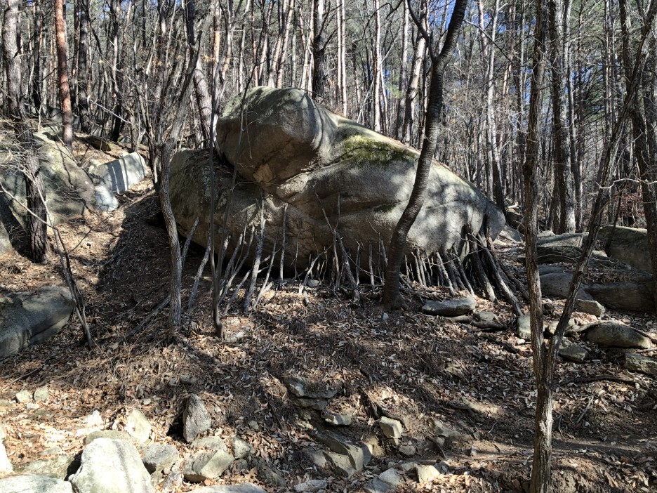 이 바위 밑에 나무들은 왜 저렇게 바쳐놓았을까요? 설마 굴러가지 말라고 받쳐놓은것은 아니겠죠? ㅎ