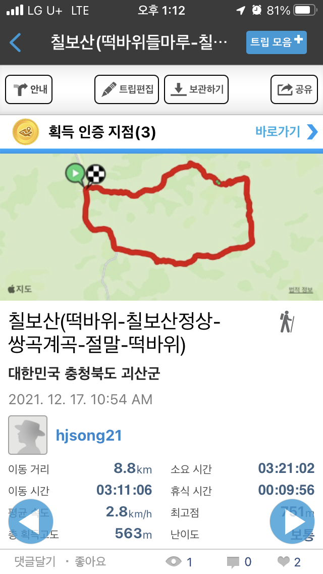 오늘 다녀온 칠보산 코스는...