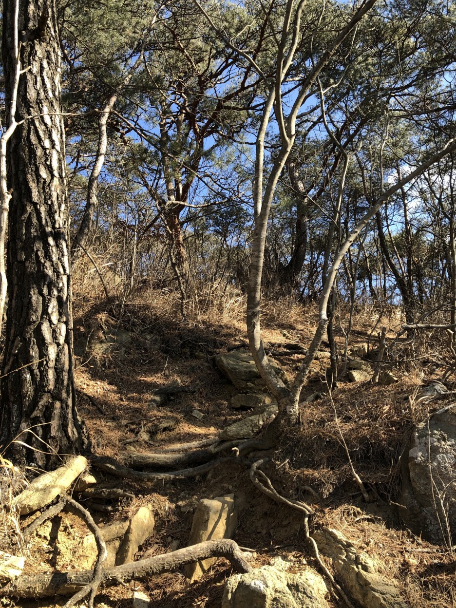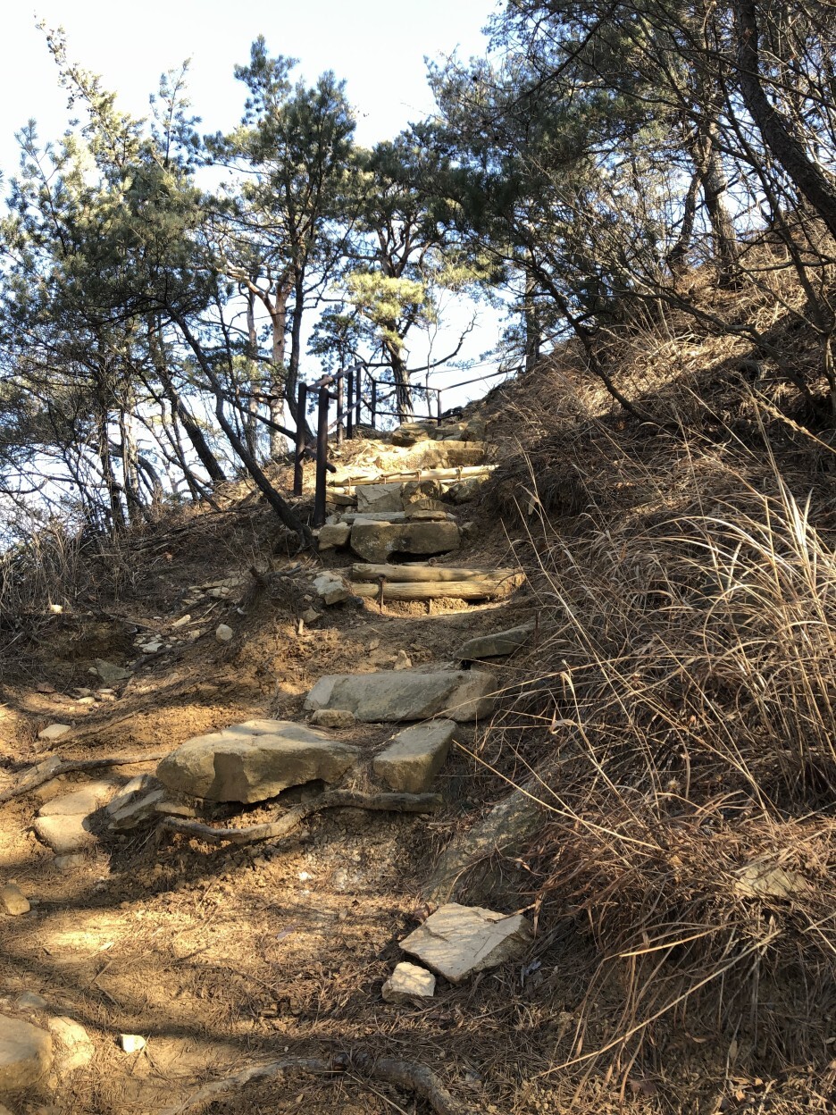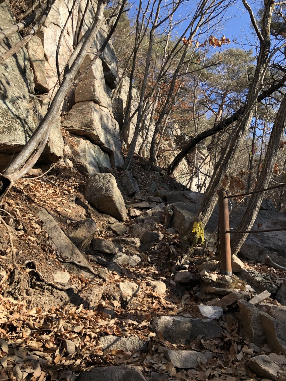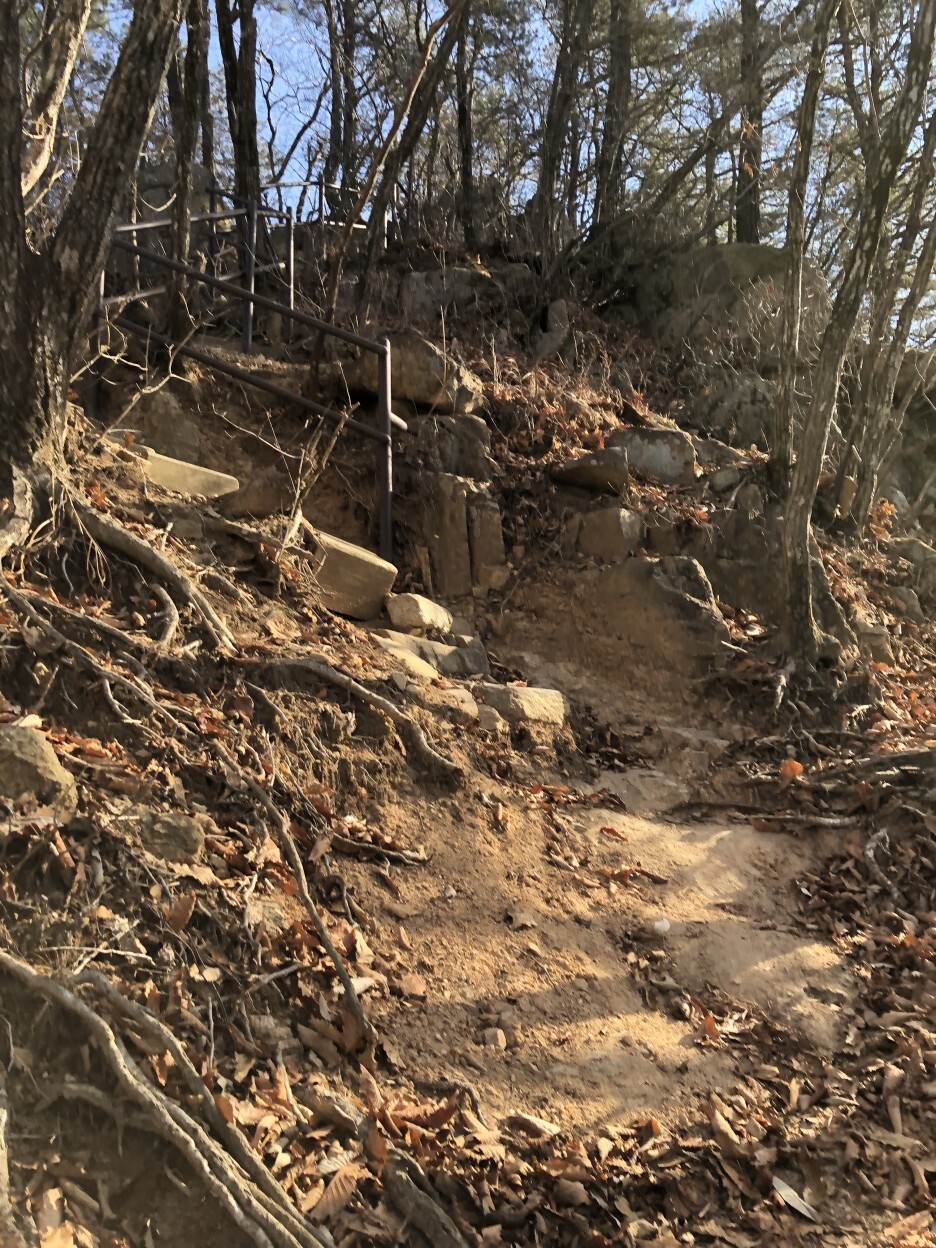 이제 등산 시작입니다. 시작하자마자 가파른 산길을 올라가야 합니다.