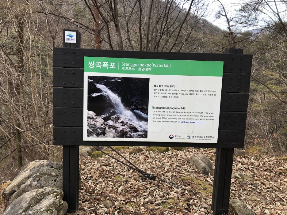 그런데, 눈앞에 다시 보인 쌍곡폭포 표시. 이곳을 따라 내려가보니...
