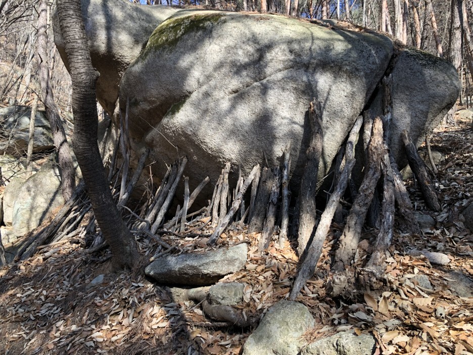 이 바위 밑에 나무들은 왜 저렇게 바쳐놓았을까요? 설마 굴러가지 말라고 받쳐놓은것은 아니겠죠? ㅎ