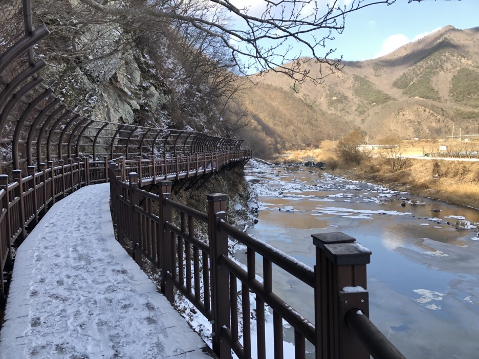 밤사이 눈이 하얗게 내린 초겨울 어느날 친구들과 함께 황간 월류봉 둘리길을 찾았습니다.