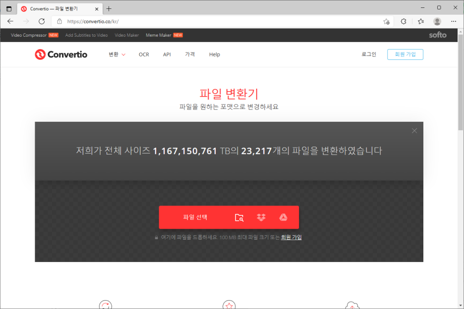 대부분의 사이트의 사용법은 유사하므로 간단하게 변환 방법을 알아보도록 하겠습니다.