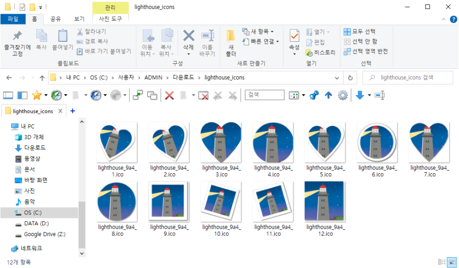 일반적인 사용자들은 이러한 ico 파일을 사용할 일이 없겠지만,