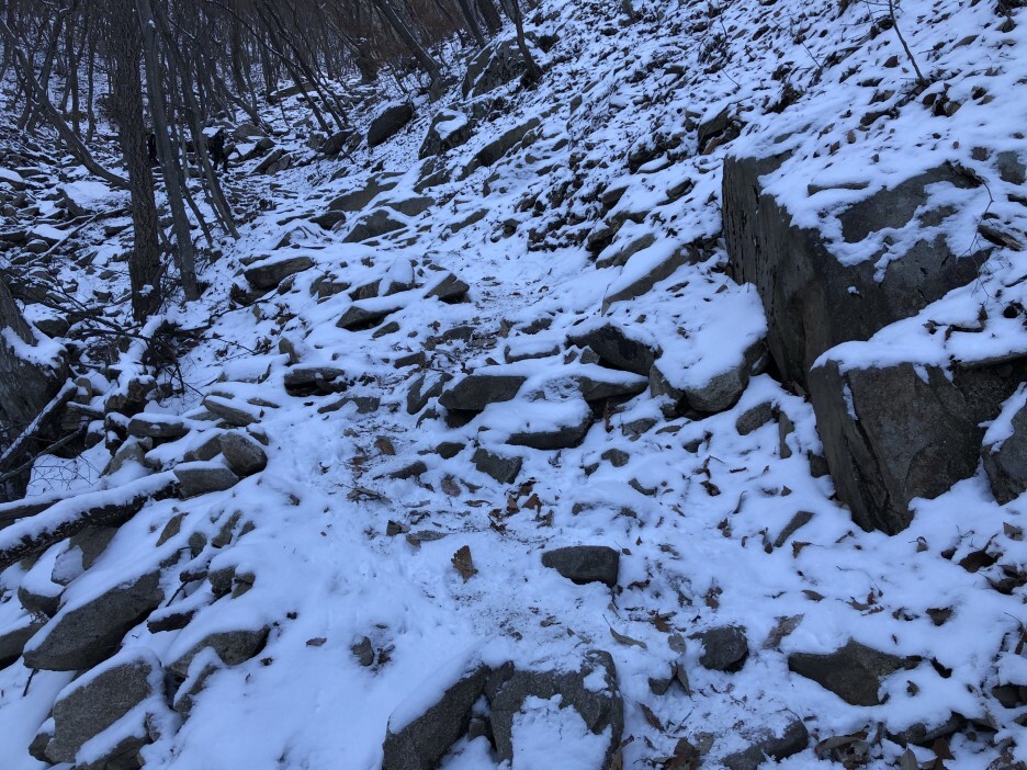 길이 미끄럽지가 않아서요... 이따 내려올 때 미끄럽다면 아이젠을 사용할 계획입니다.