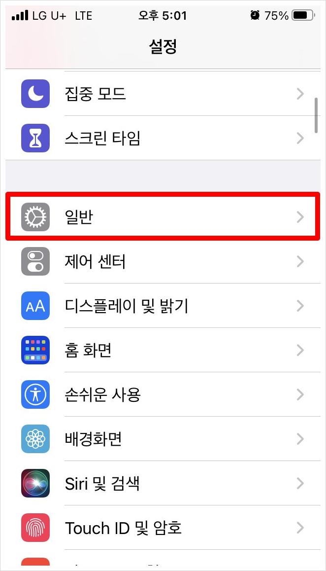 우선 설정을 실행시킨 후 아래로 쭉 내려 [일반]을 선택합니다.