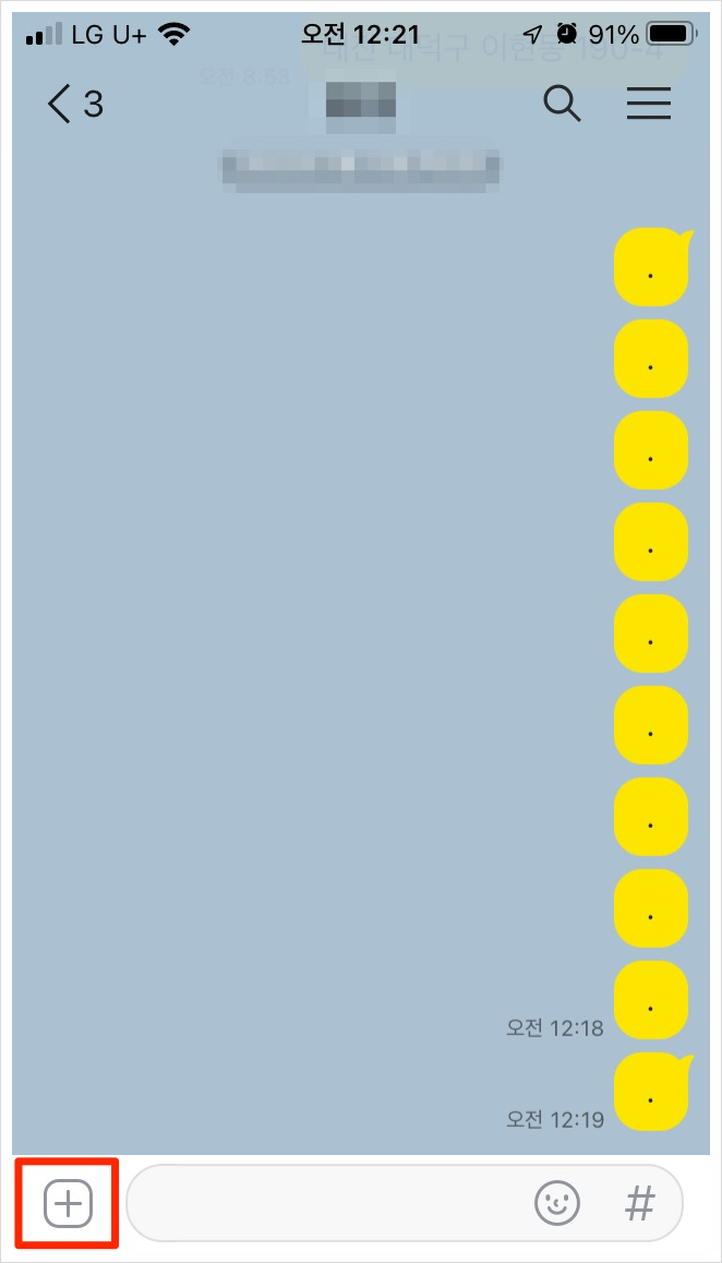 대화창 왼쪽 하단에 [+] 버튼을 클릭합니다.