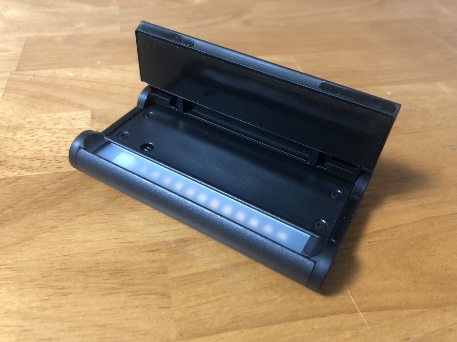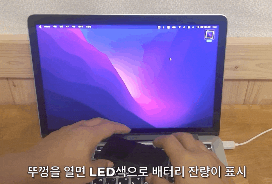 제품의 뚜껑(하단 받침)을 열면 LED의 색으로 배터리 잔량을 알려줍니다.