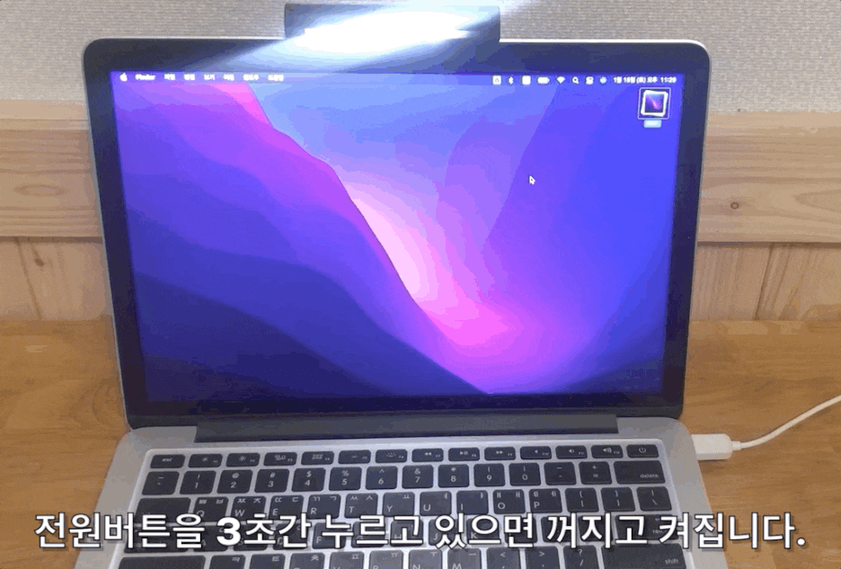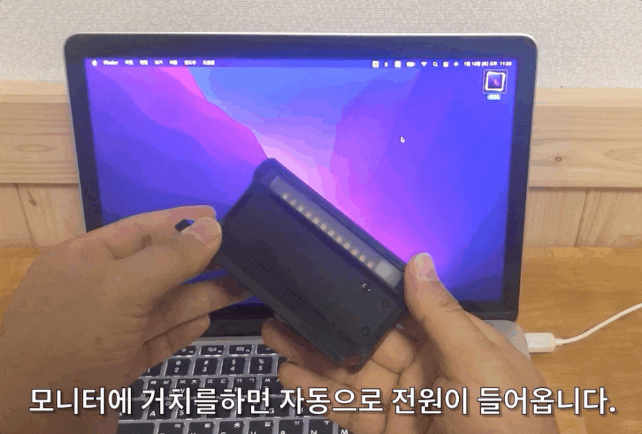제품을 모니터에 거치하면 자동으로 전원이 켜집니다. 오~~~ 대박~~~