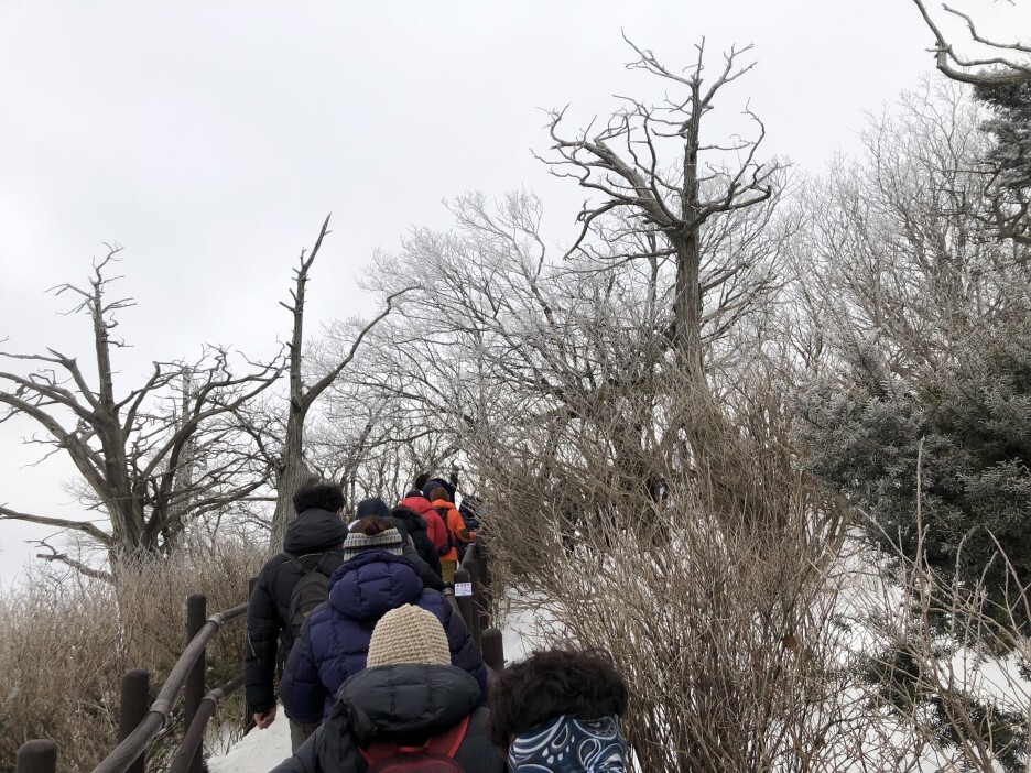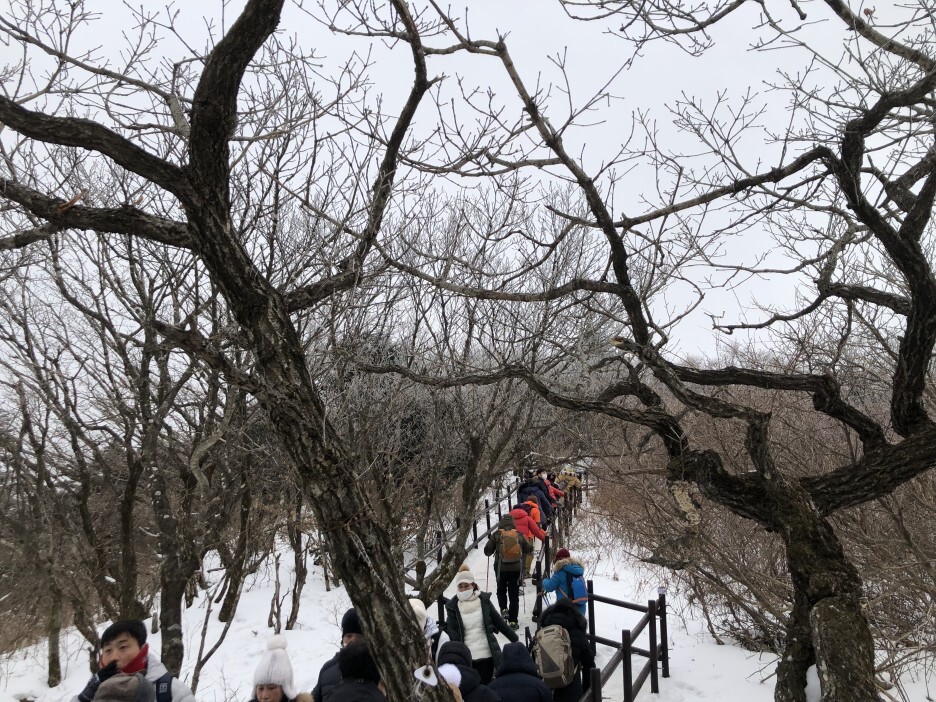 향적봉으로 올라가는 계단은 좁아서 그냥 줄줄이 떠밀려서 올라가야 하네요...