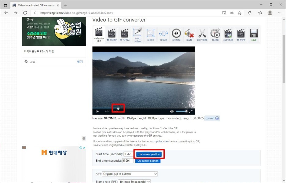 혹시 일부 영상을 움짤로 만들려면,
