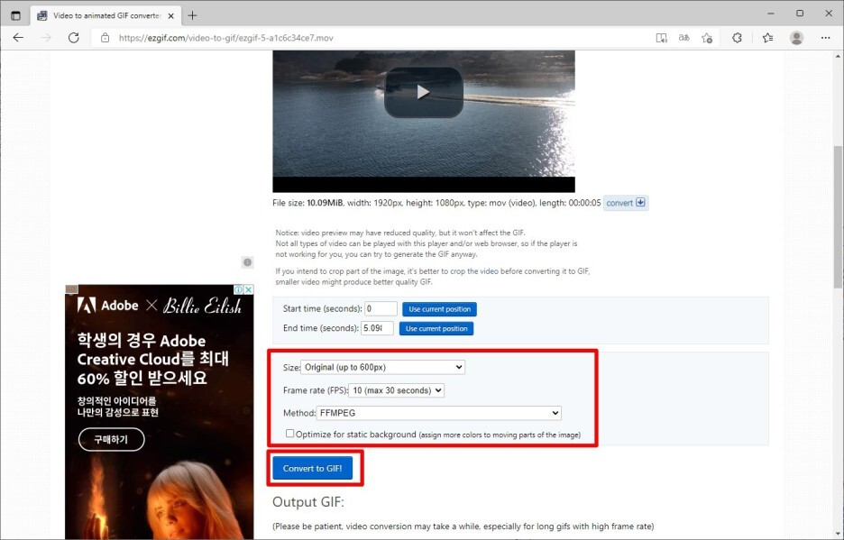 그리고 마지막으로 [Convert to GIF!] 버튼을 클릭합니다.