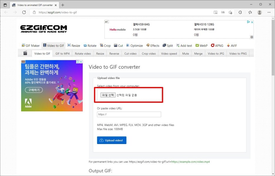 먼저 http://ezgif.com/video-to-gif 사이트에 접속합니다.