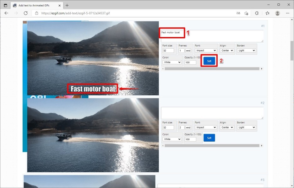 원하는 프레임에 원하는 자막을 넣고 [Set] 버튼을 클릭하면 됩니다.