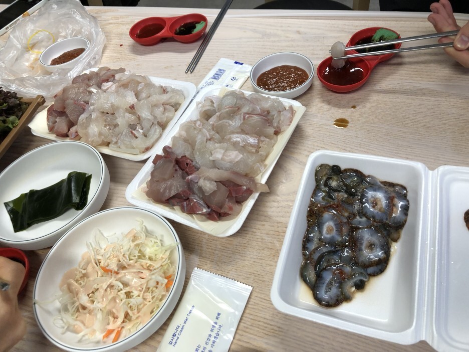 포장해준 회를 가지고 초장집이라고 하는 곳으로 가지고 가서 맛있게 먹습니다.