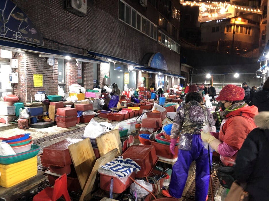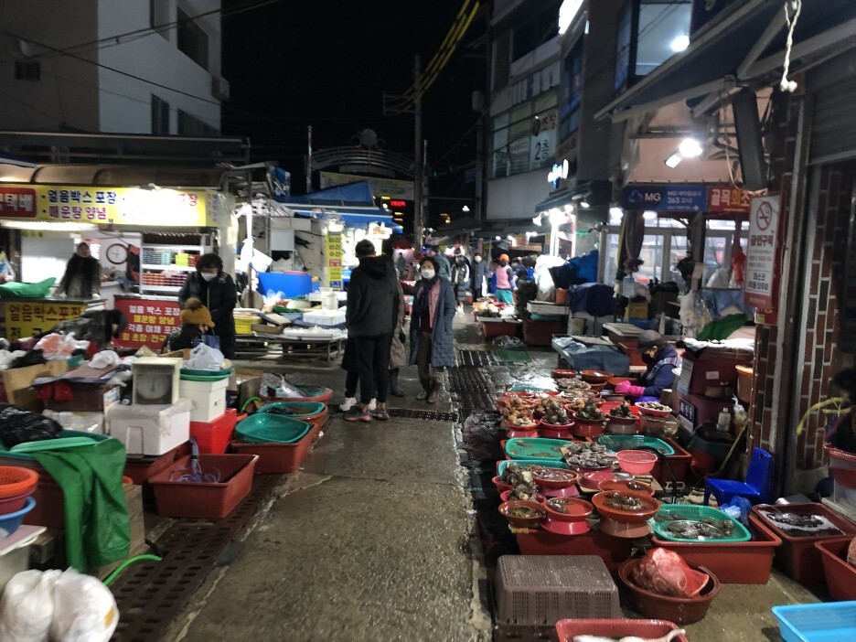 저녁 7시가 넘어서 수산시장에는 사람들이 별로 없습니다.