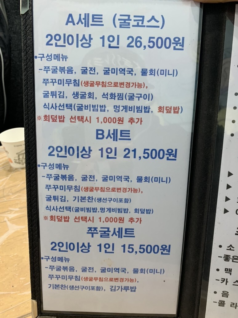 우리가족은 어제 회도 많이 먹고, 국 비빔밥이나 멍게 비빔밥도 특별히 땡기지 않아서 그냥 쭈굴세트 주문.