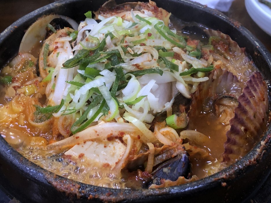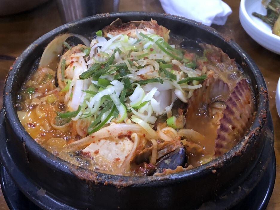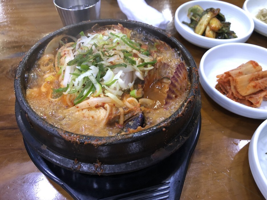 드디어 해물뚝배기가 나왔습니다. 간이 약간 세긴 하지만 맛있게 먹고 왔습니다.