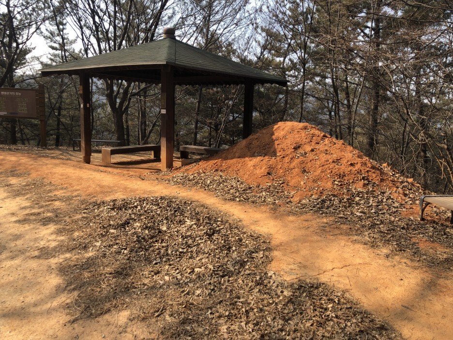 봄에 황토길을 만들 황토가 곳곳에 쌓여 있습니다. 황토길을 한바퀴 돌아 출발지로 돌아옵니다.