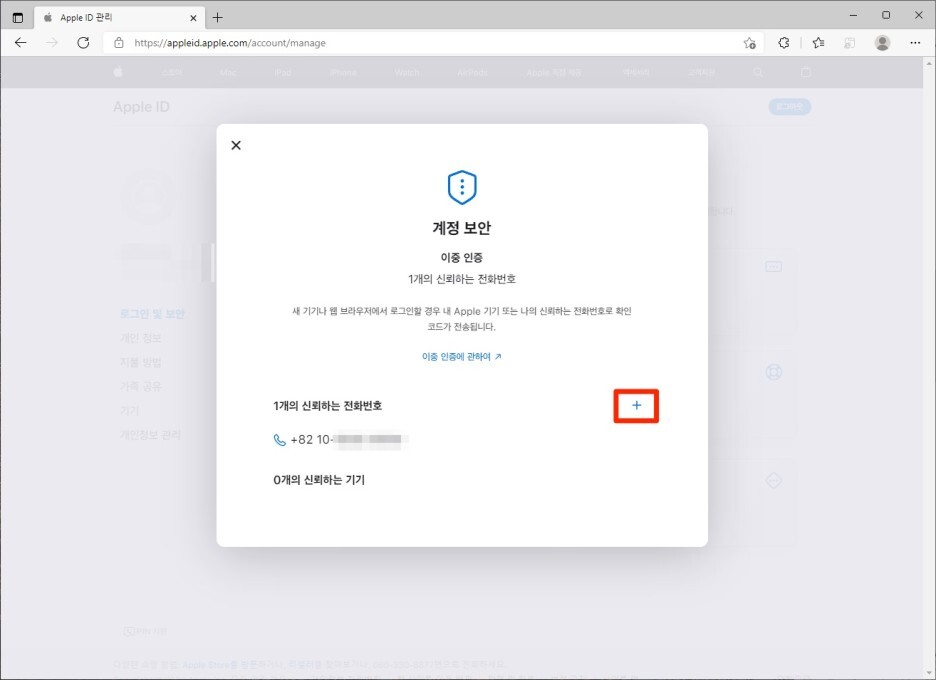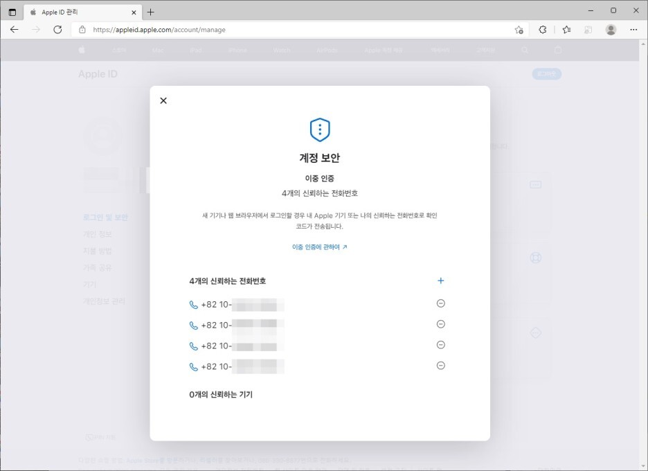 애플 계정에 이중인증 전화번호 여러개 추가하기