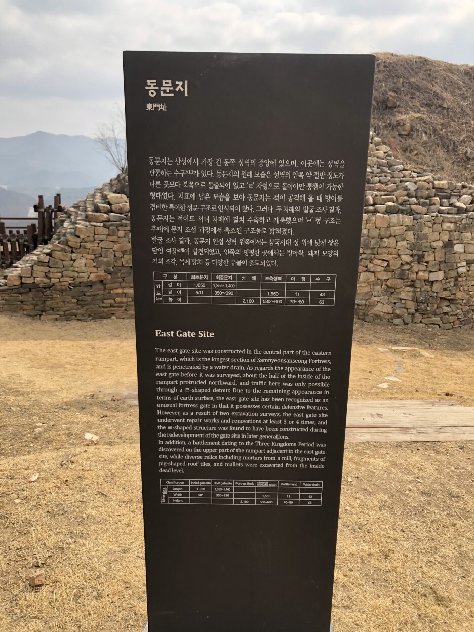전체 코스는 주차장-서문지-남문지-동문지-(밖으로 나가서)고분군-(되돌아와서)동문지-북문-보은사-서문 이렇게 다녀왔습니다.