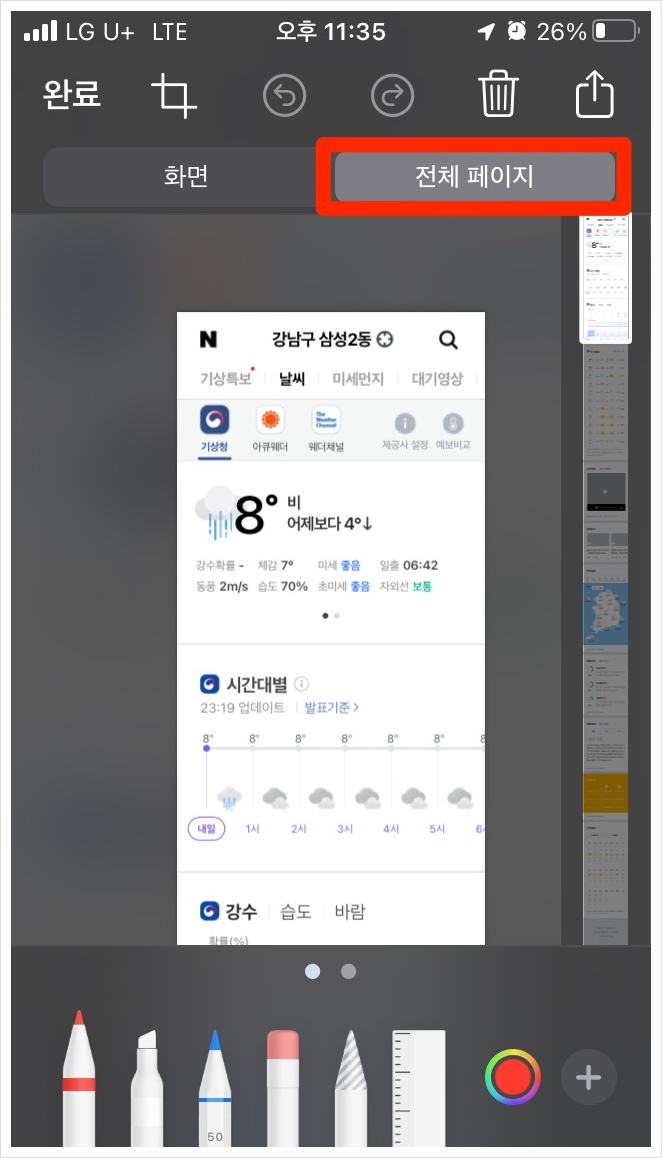 아이폰에서 사파리 웹브라우저 스크롤 캡쳐