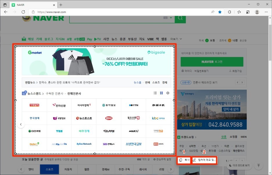 그럼 엣지의 웹 캡처 기능을 사용해보도록 하겠습니다.