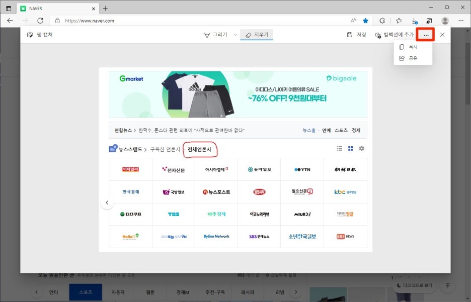 마이크로소프트 엣지(Edge) 웹 캡처 사용하기