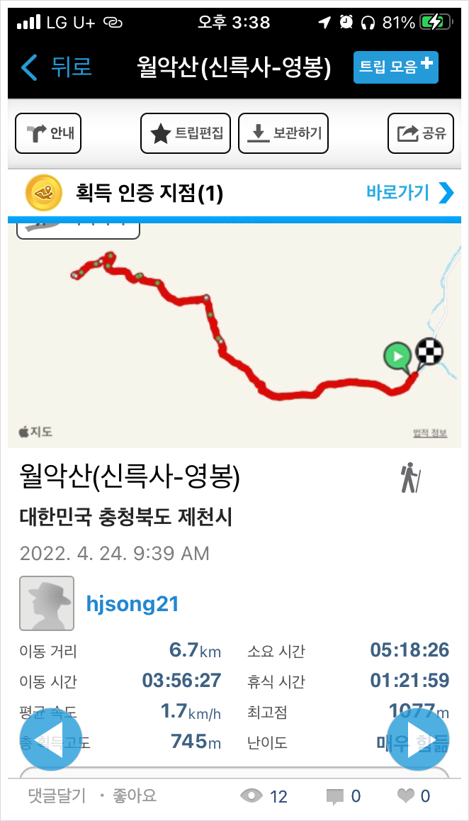 코로나 격리 해제 1주일 후에 다녀온 월악산.