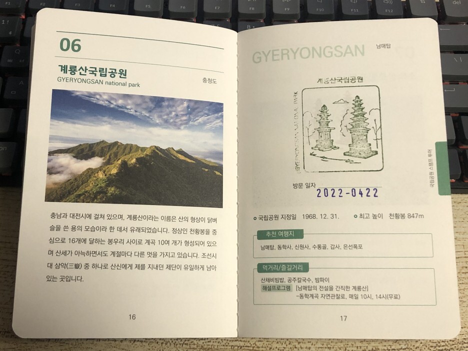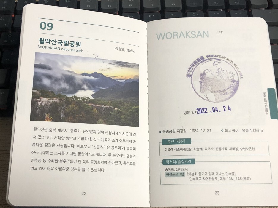 지난 4월 22일 국립공원 스탬프투어 여권을 발급 받았습니다.