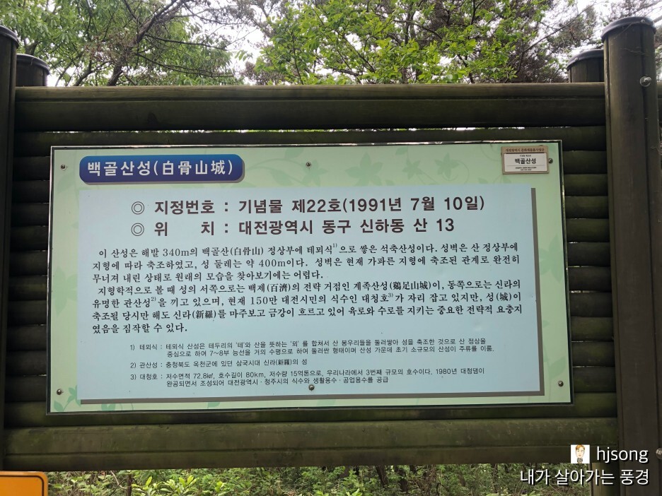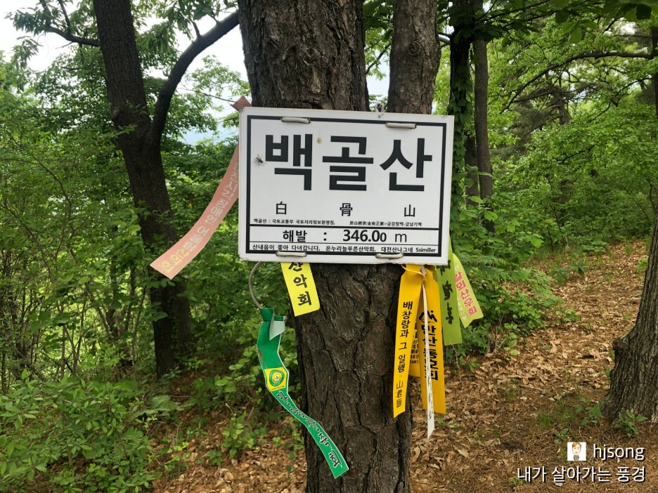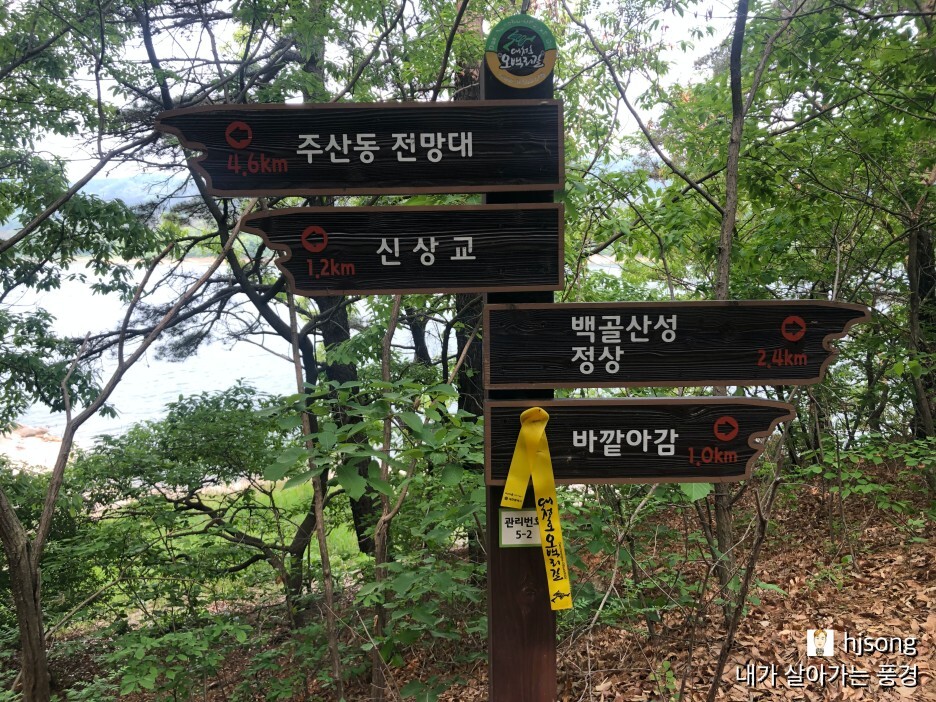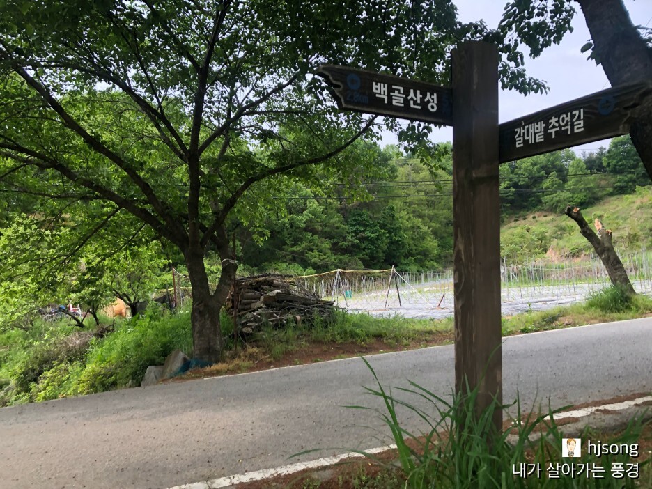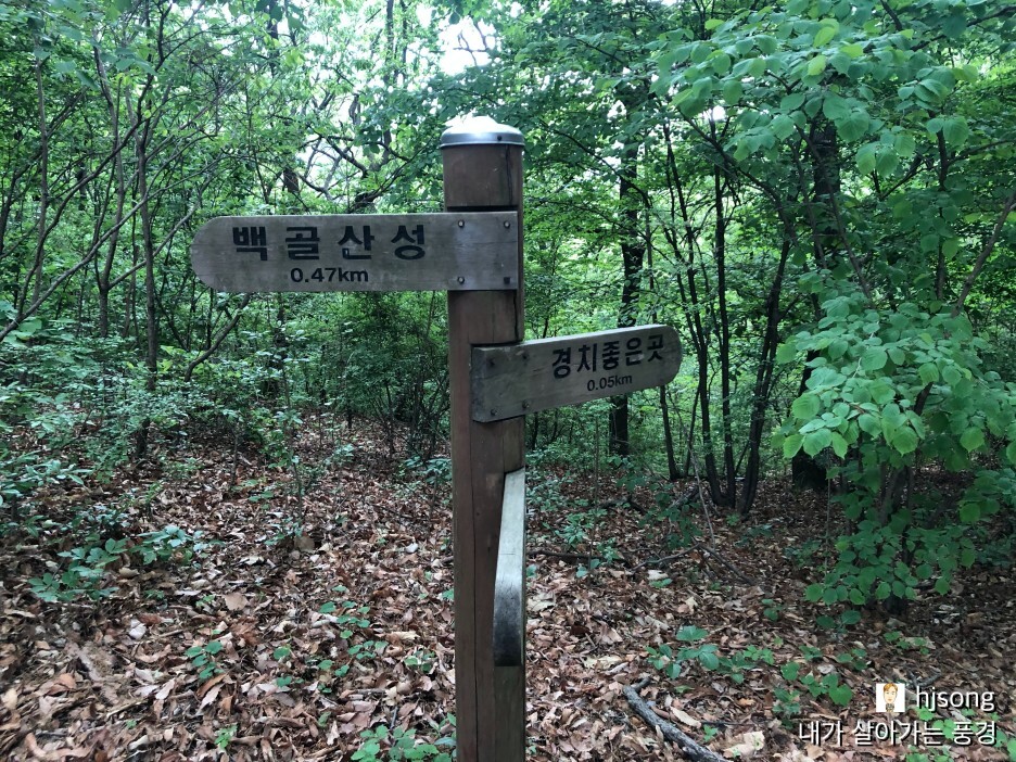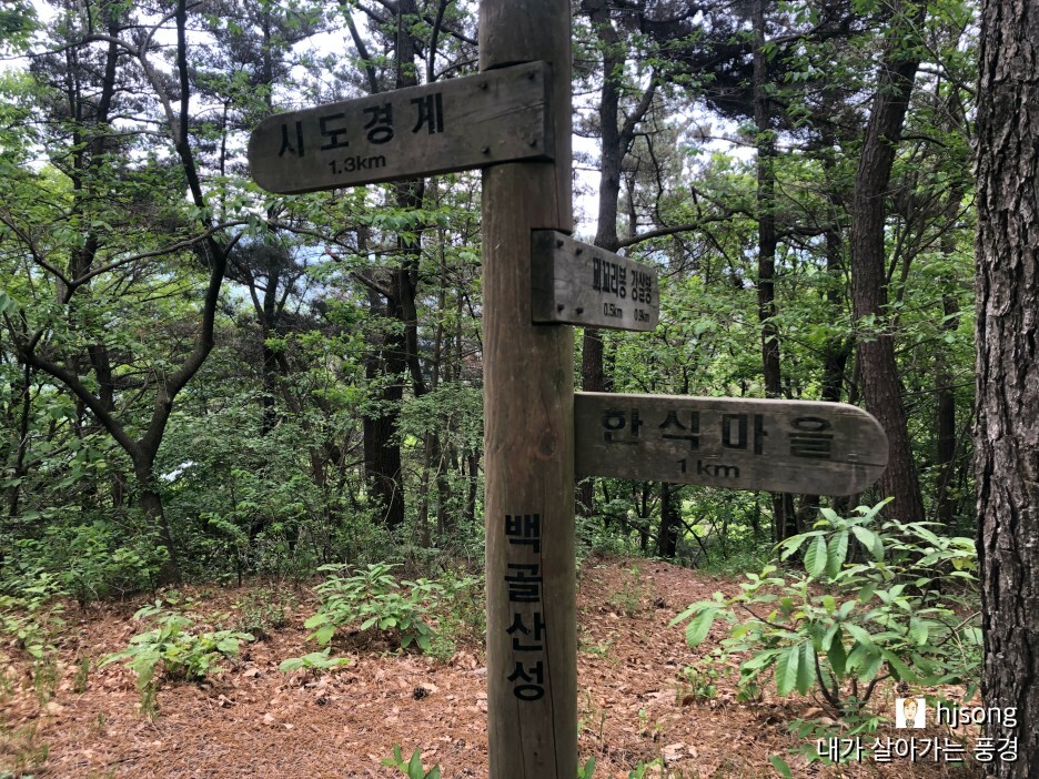 이곳은 백골산성이 있던 자리인데, 산성의 흔적은 온데간데 없고 표지판만 남아 있습니다.