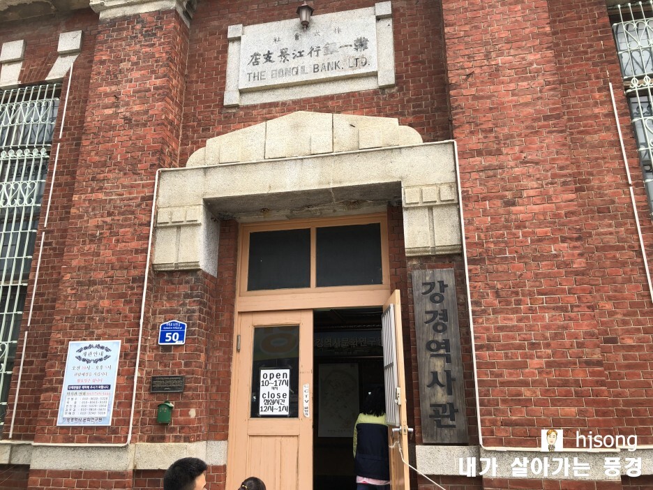 강경역사관은 구.한일은행 강경지점을 전시관으로 꾸며놓은 곳으로서 1905년 한호농공은행 강경지점으로 설립되었고, 일제에 의해 조선식산은행 강경지점으로 사용 되다가, 해방 후 한일은행 강경지점으로 사용되었다고 합니다.