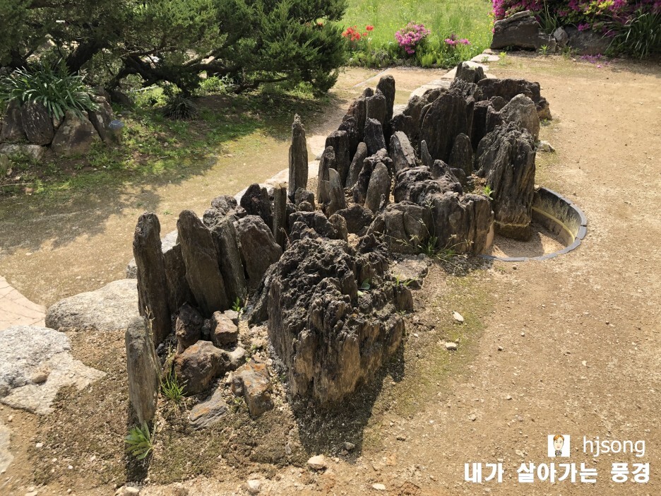 사랑채 앞에 펼쳐진 축소된 금강산을 표현한 석가산.