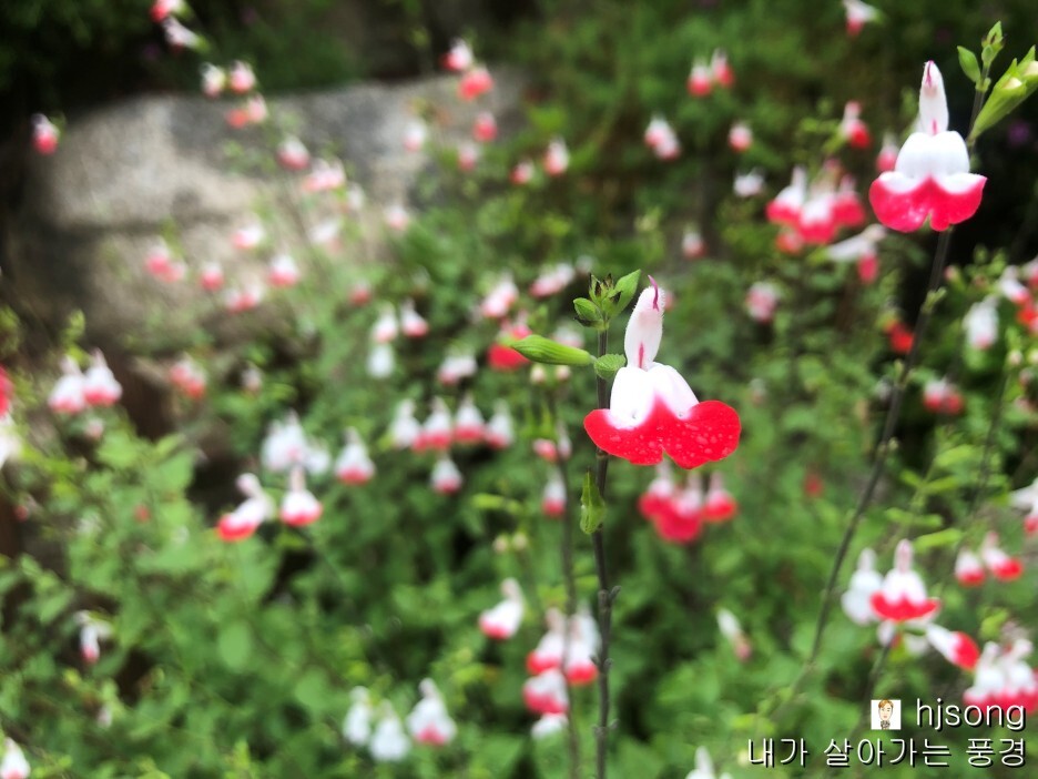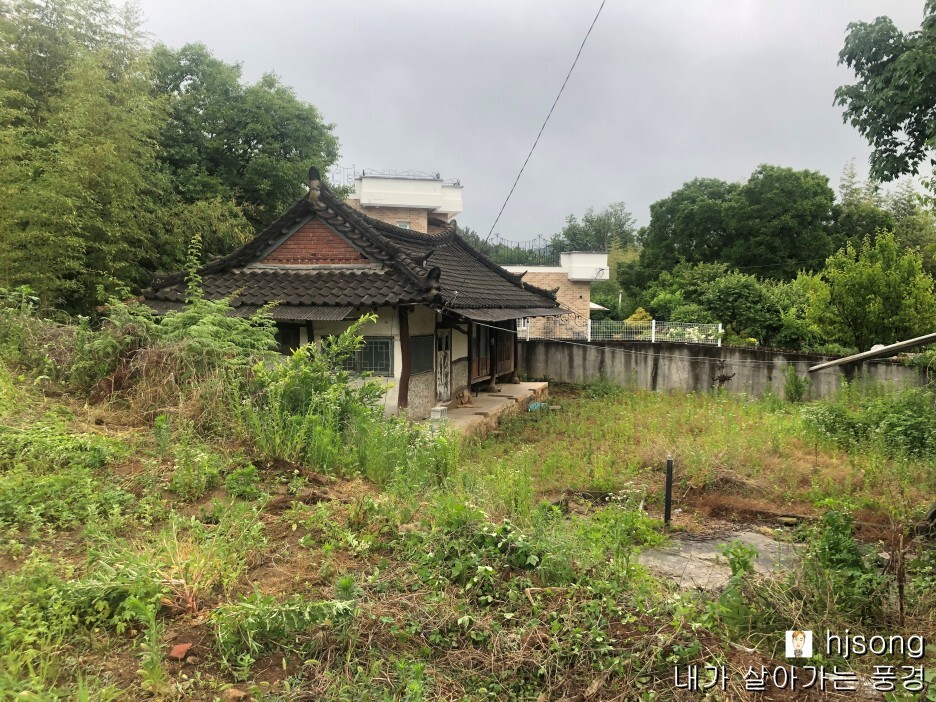 담벼락 옆에 피어있는 꽃들과 담장이 넝쿨들로 정겨운 시골길...