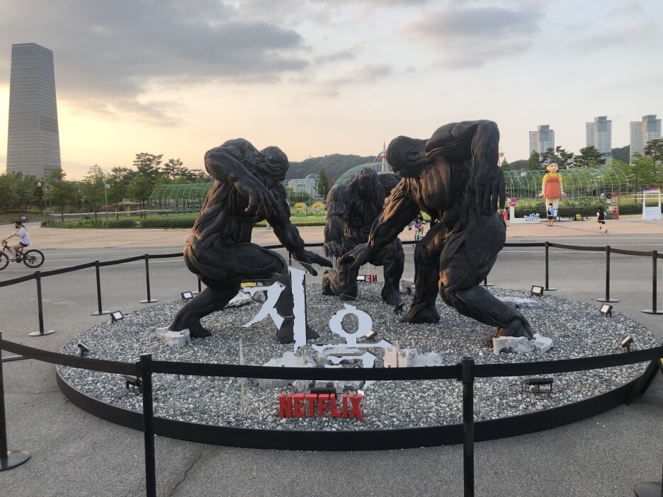 광장에는 넷프릭스의 지옥의 괴물이 자리잡고 있네요...