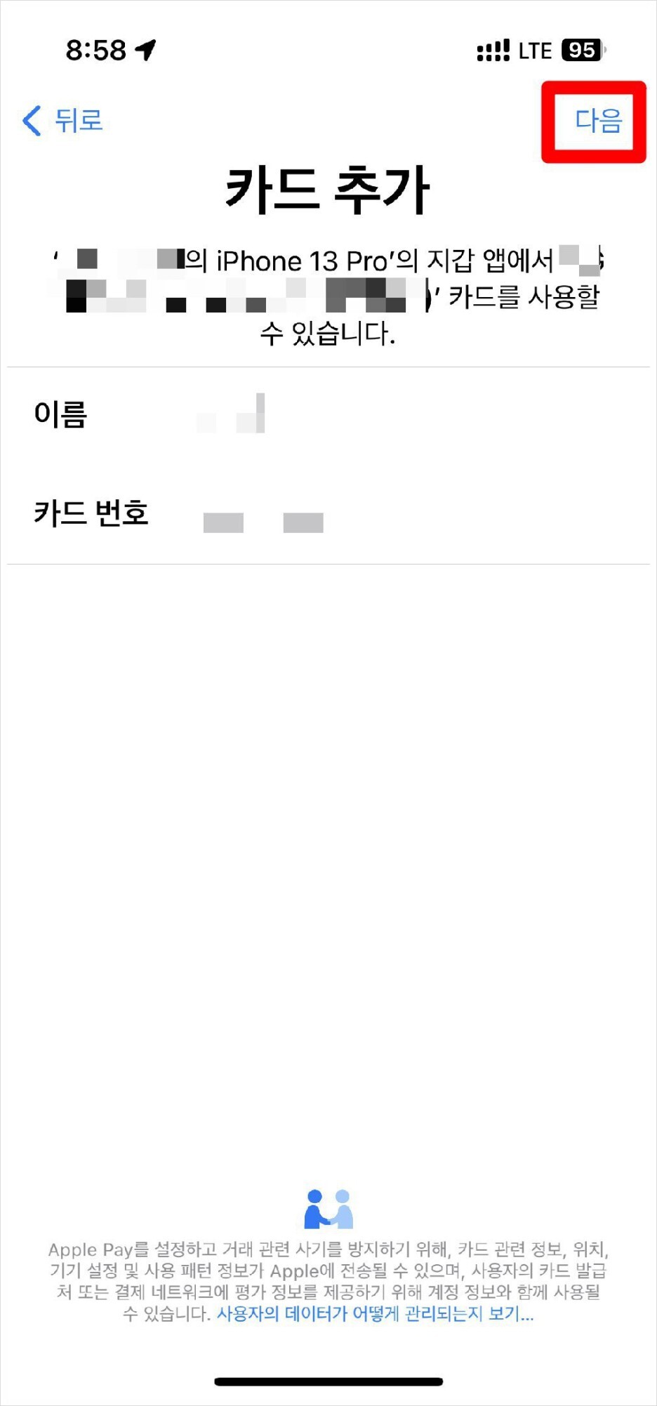 추가할 카드를 확인한 후 [다음] 버튼을 클릭합니다.